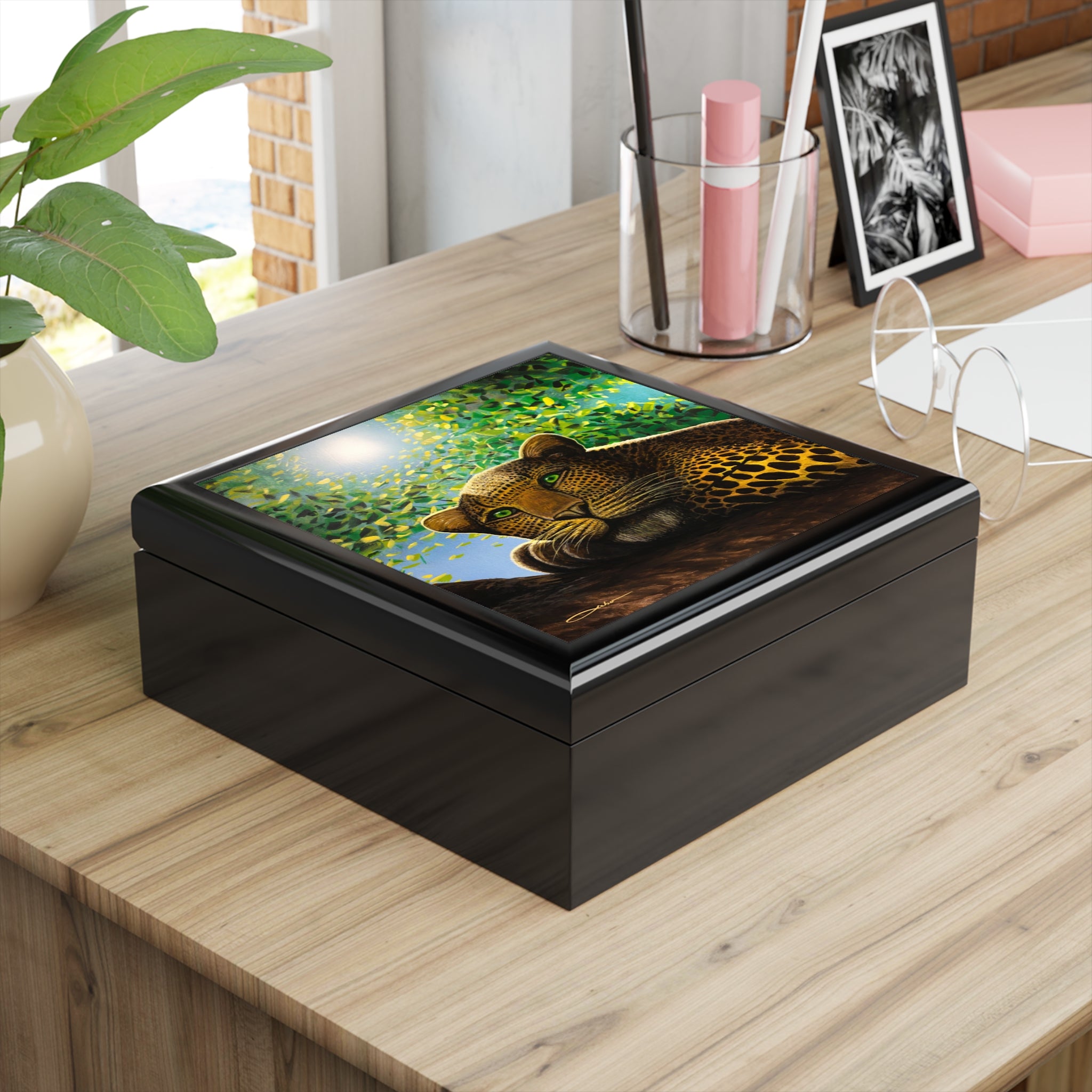 This glossy jewelry box brings a slice of sunset to your dresser. The vibrant, glossy ceramic tile on top captures warm ocean colors and becomes a small piece of art you can touch. Inside, soft felt cradles rings, chains, and keepsakes so they don’t rattle or scratch. Dual hinges hold the lid open at 90° for easy access while the slip-resistant felt base keeps the box steady on vanities or bedside tables. Choose from three glossy colors to match your room or mood — the varnished rubberwood construction gives the piece a warm, durable feel that ages beautifully.