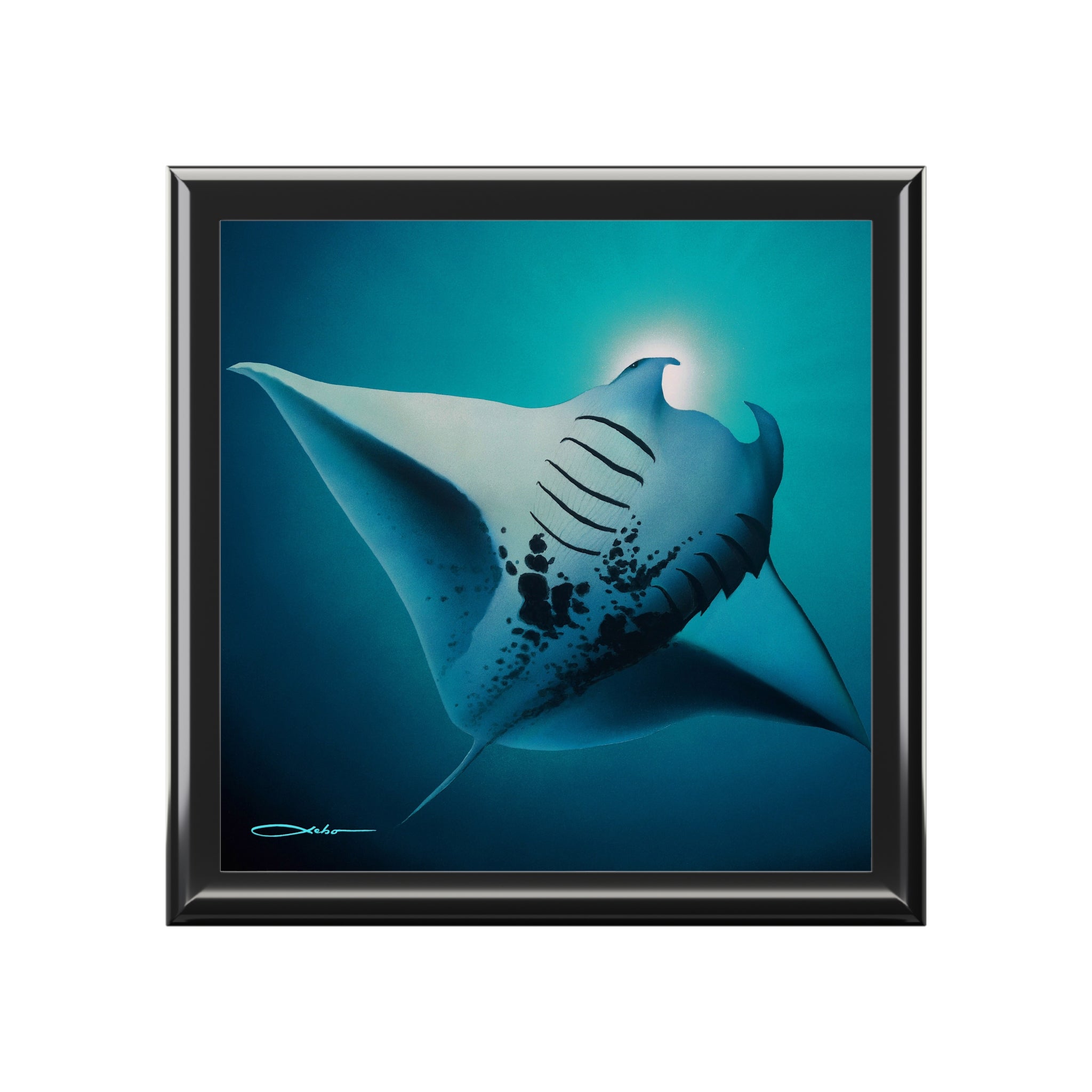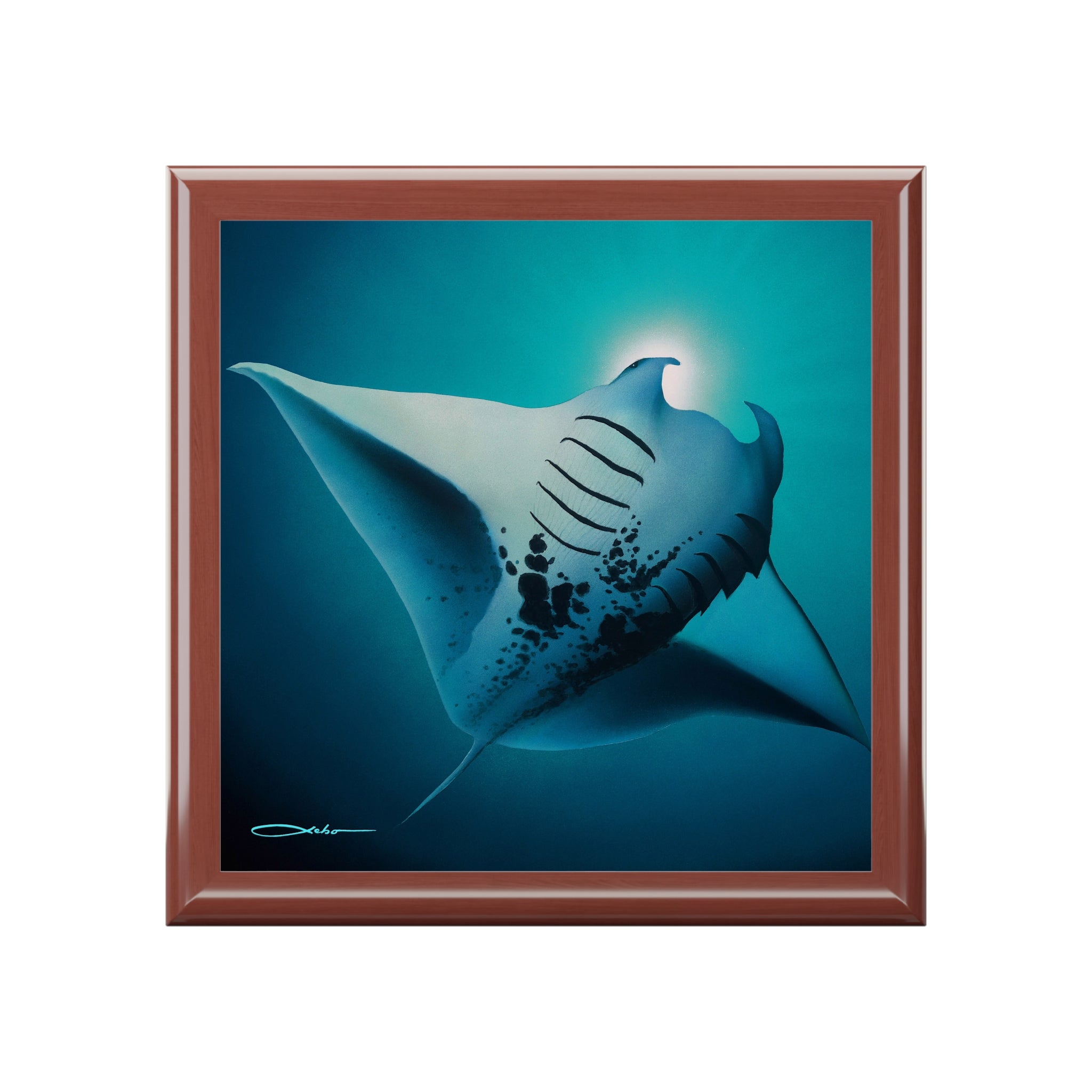 - 6" x 6" glossy sublimation ceramic tile top with manta ray artwork