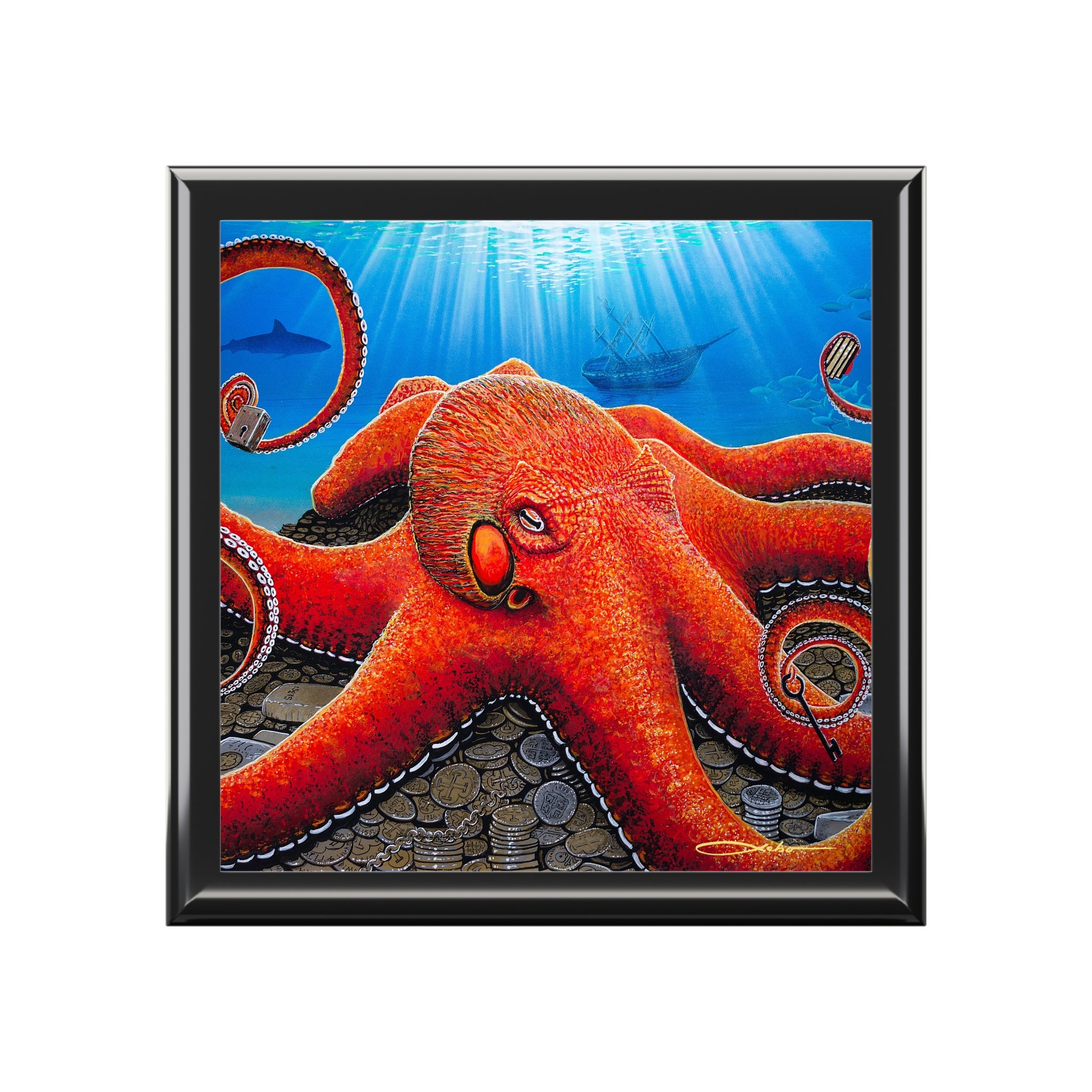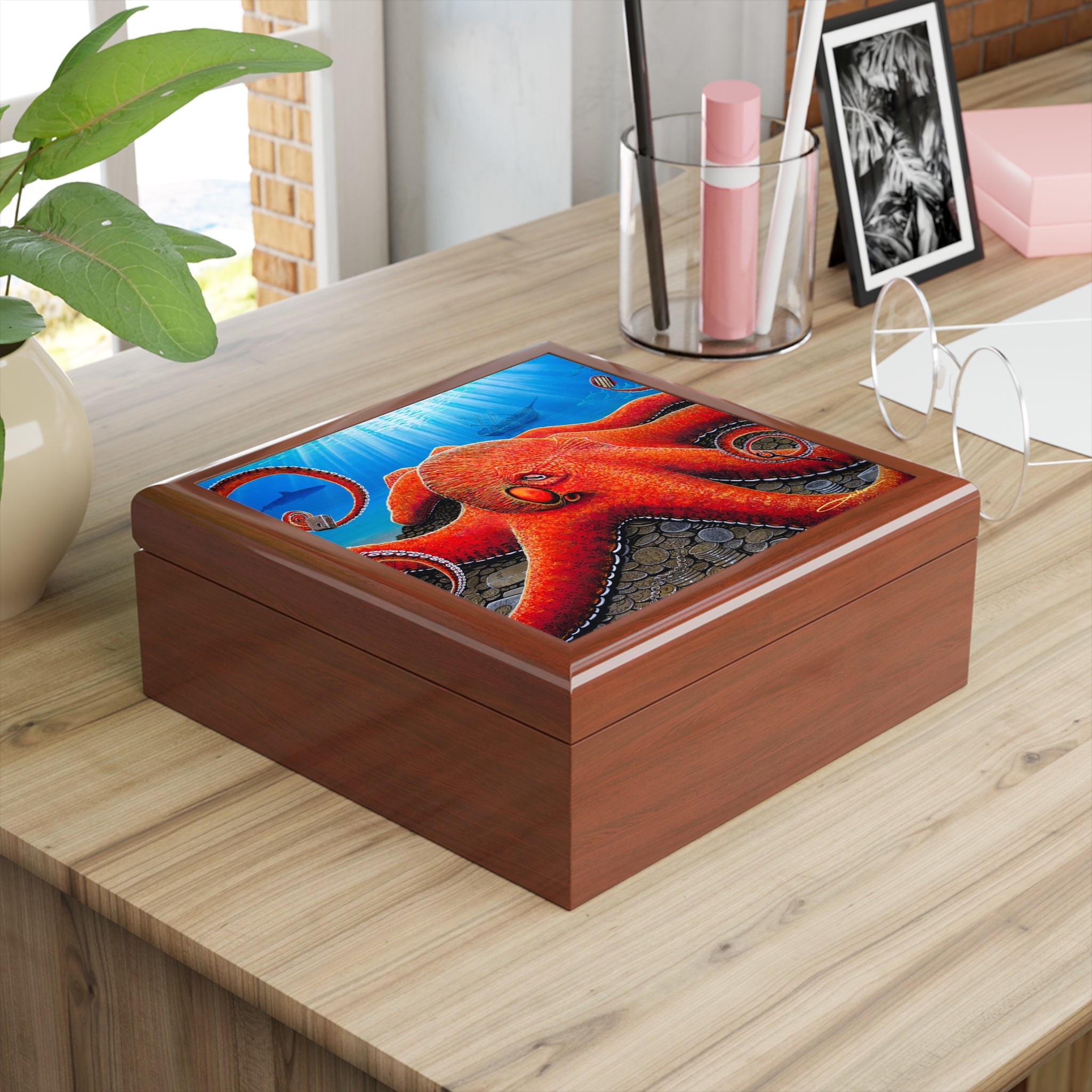 Product features - 6" x 6" glossy sublimation ceramic tile with octopus artwork - High-quality rubberwood construction with varnish finish - Interior lined with soft felt to protect jewelry - Dual hinges lock the lid at a 90° angle for stable access - Slip-resistant felt base keeps the box from sliding