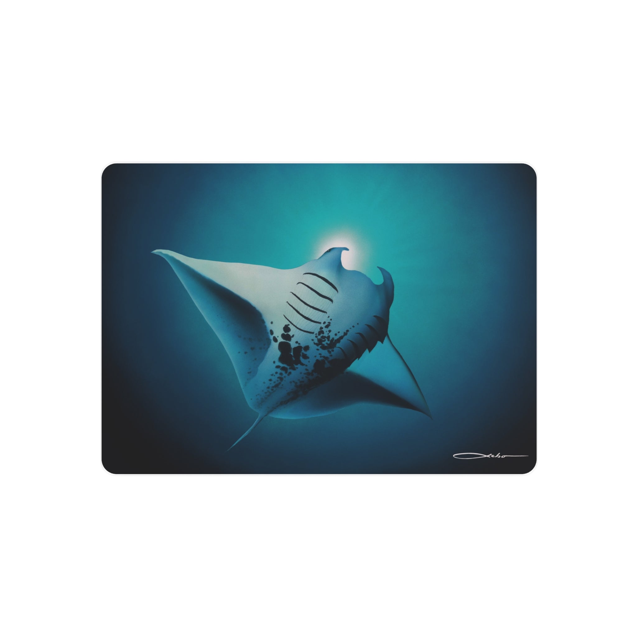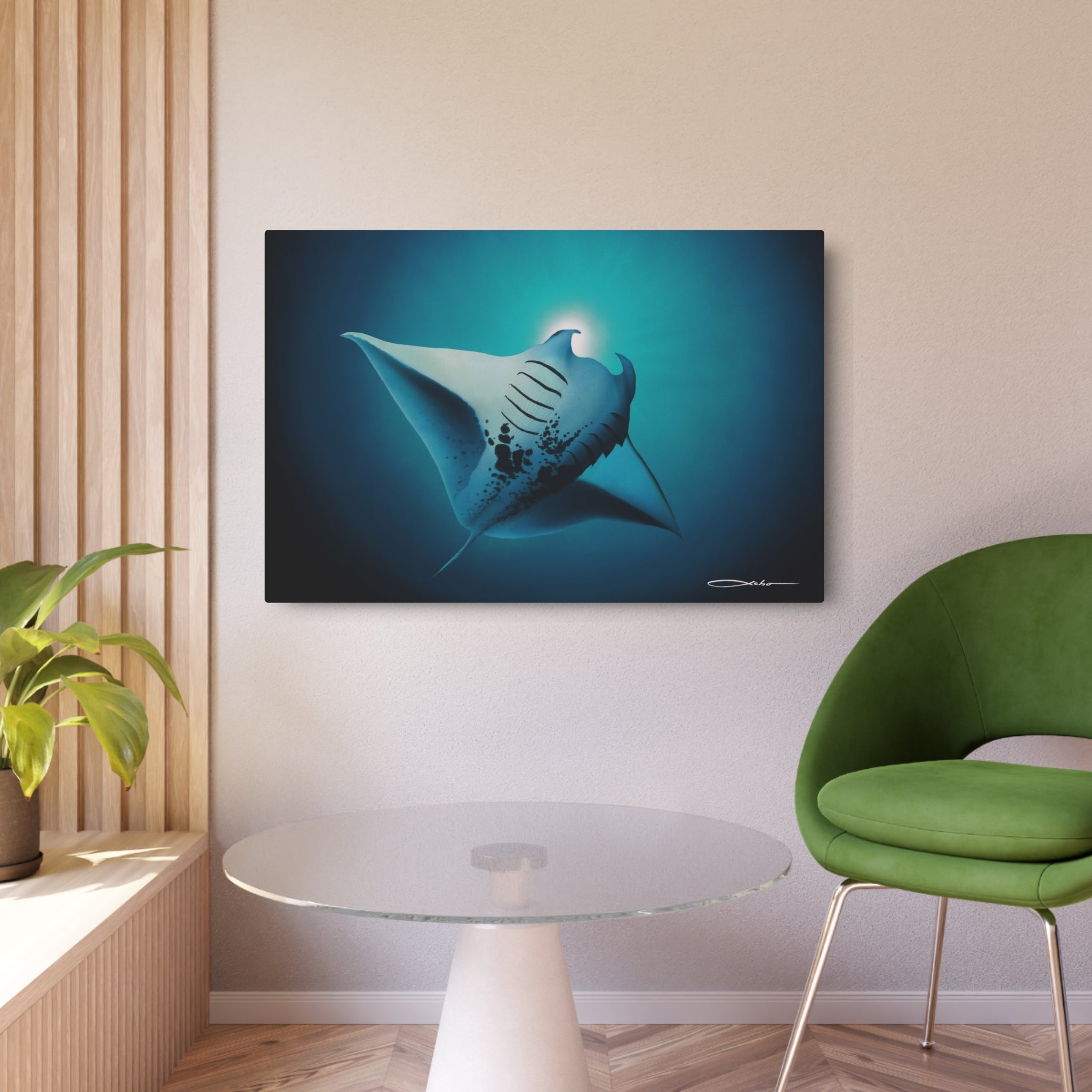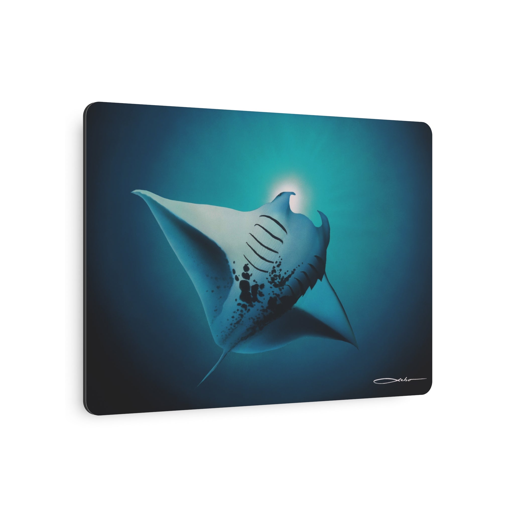Bring the quiet, wide-open ocean into your home with this matte metal art sign featuring a graceful manta ray gliding through deep-blue waters. The smooth, muted finish and rich color depth give the image a soft, immersive feel — like a moment caught just beneath the surface. Lightweight yet sturdy, the aluminum composite keeps the piece slim against the wall while the included mounting block and adhesive make placement straightforward. Hang it in a bathroom, hallway, or seaside-inspired room to evoke calm, curiosity, and a longing for blue horizons.