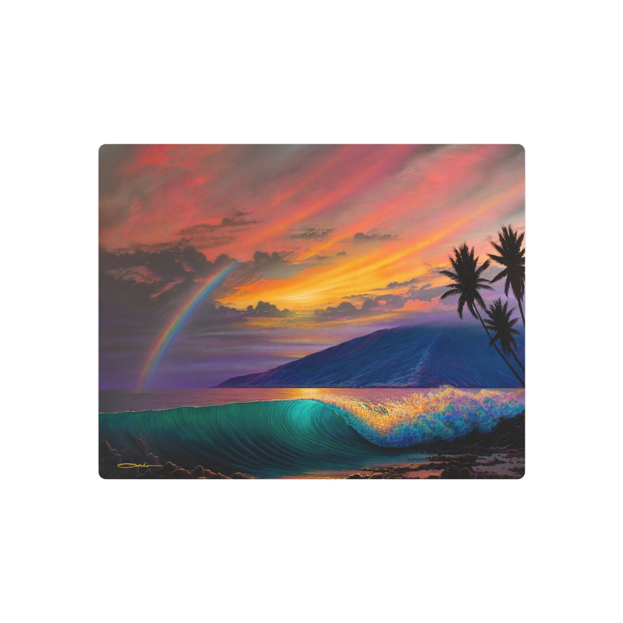Bring a slice of sunset surf into your home with this matte-finish metal art sign. The scene—a glowing twilight sky, a shimmering rainbow, and a rolling emerald wave breaking toward a distant shore—feels like a quiet moment after a day on the water. Lightweight yet rigid, the white aluminum panel holds vibrant full-color printing that keeps the colors rich without glare. Hang it in a living room, hallway, or studio to conjure island evenings, slow waves, and the calm that follows a day outdoors. The included mounting block and tape let you position the piece quickly; a small, simple assembly finishes the job and leaves you with a lasting, low-maintenance accent that ages like a keepsake.