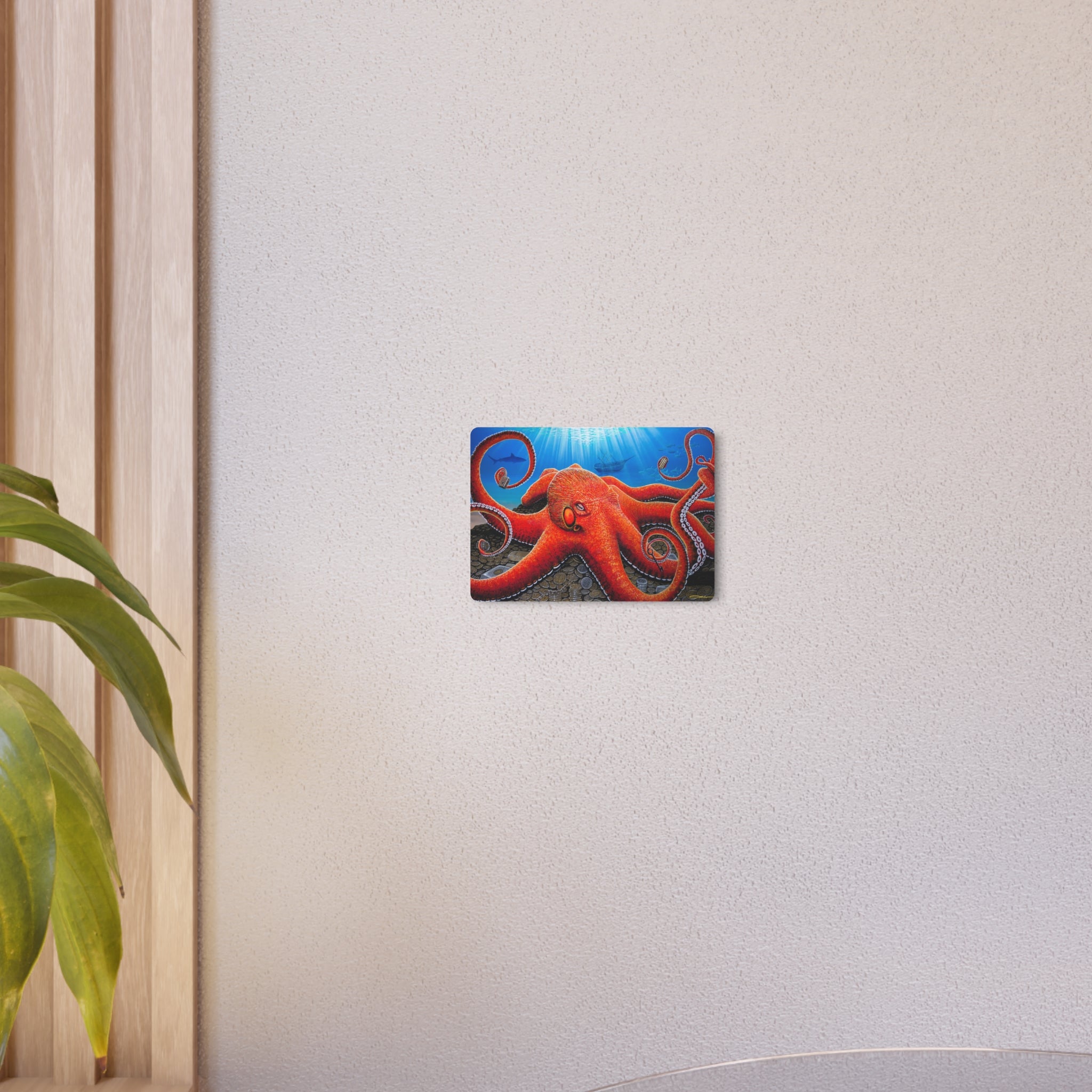Bring the ocean’s mystery into your space with this vivid metal art sign. A bold, hand-painted octopus unfurls across a matte aluminum surface, its warm reds and oranges glowing against deep blue waters. Lightweight yet sturdy, the aluminum composite holds crisp color and detail so the scene feels alive on your wall. Hang it in a compact reading nook, above a coastal bookshelf, or as a striking accent in a bathroom or studio — it adds atmosphere without taking up floor space. The included mounting block and tape keep installation minimal; a little assembly ties the piece to your wall and sets the scene.
